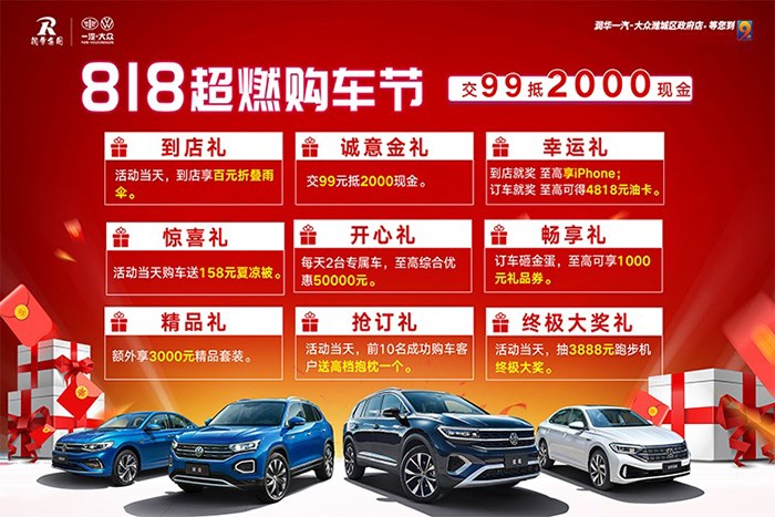 7、用车无忧礼:1999元起即可购买一汽-大众专属双保优惠套餐,祝您用车安心,放心!