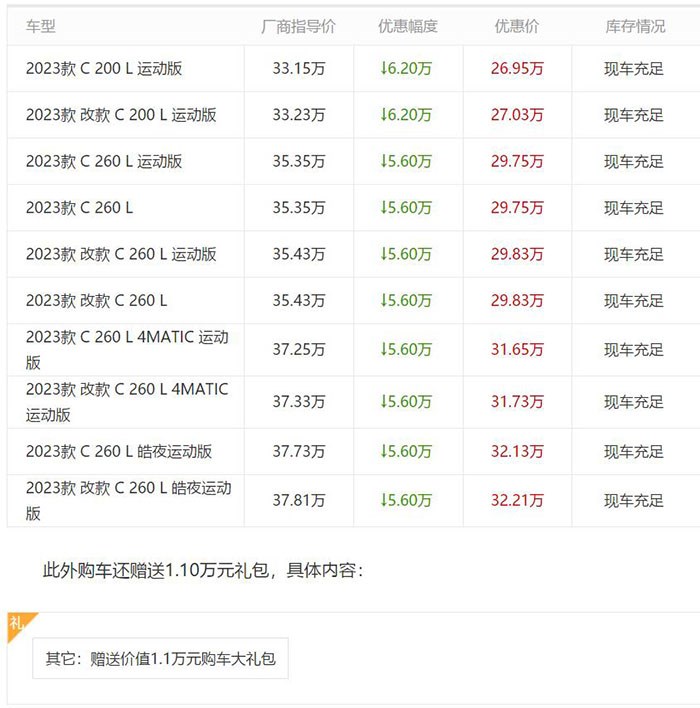 【牛奔购车网】利星行-青岛之星奔驰C级优惠高达6.2万元,店内现车颜色可选,感兴趣的朋友可以到店咨询购买,详情见下表: