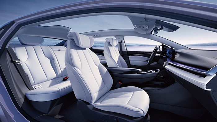 得益于奥特能电动车平台和2954mm超长轴距,别克ELECTRA E4拥有宽适的座舱空间。前排头部空间达到1013mm,同级领先;975mm后排头部空间表现出众,配合116mm膝部空间,为全车乘客带来惬意从容的出行体验。新车座椅采用专为电动车开发的骨架平台,并融入宽体人机工学设计。前排S型靠背轻盈动感,最大程度为后排释放出更多纵向空间;前后排座椅均配备带有侧向耳片支撑的宽体悬浮头枕,为旅途再添舒心。ELECTRA E4搭载别克图书馆静音科技,通过低噪音自研电机、5mm双层声学玻璃以及全维度声学包覆,打造极致静谧的座舱环境。