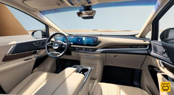 车内来看,新车采用了一体环抱式内饰风格,七座臻享款车型加入了独有的林深棕高级打孔真皮。配置上提供了30英寸一体弧面6K屏,内置了8155芯片,同时搭载了别克eConnect智联科技。此外,新车还提供4.3L车载冰箱、3个手机无线充电面板,及8个USB接口。
