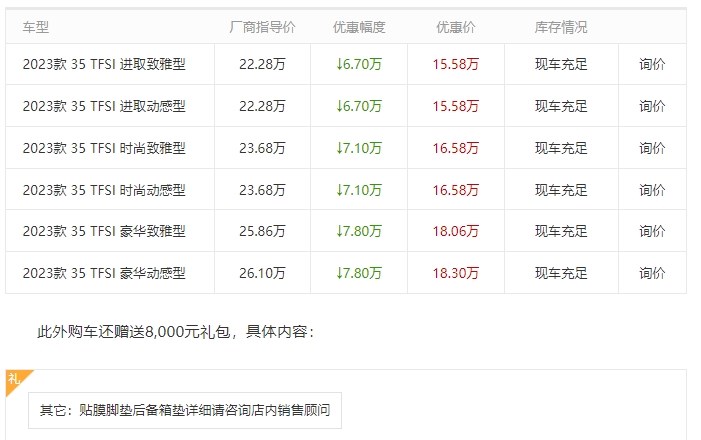潍坊广宇奥迪奥迪Q2L优惠高达7.8万元,感兴趣的朋友可以到店咨询购买,具体优惠信息如下