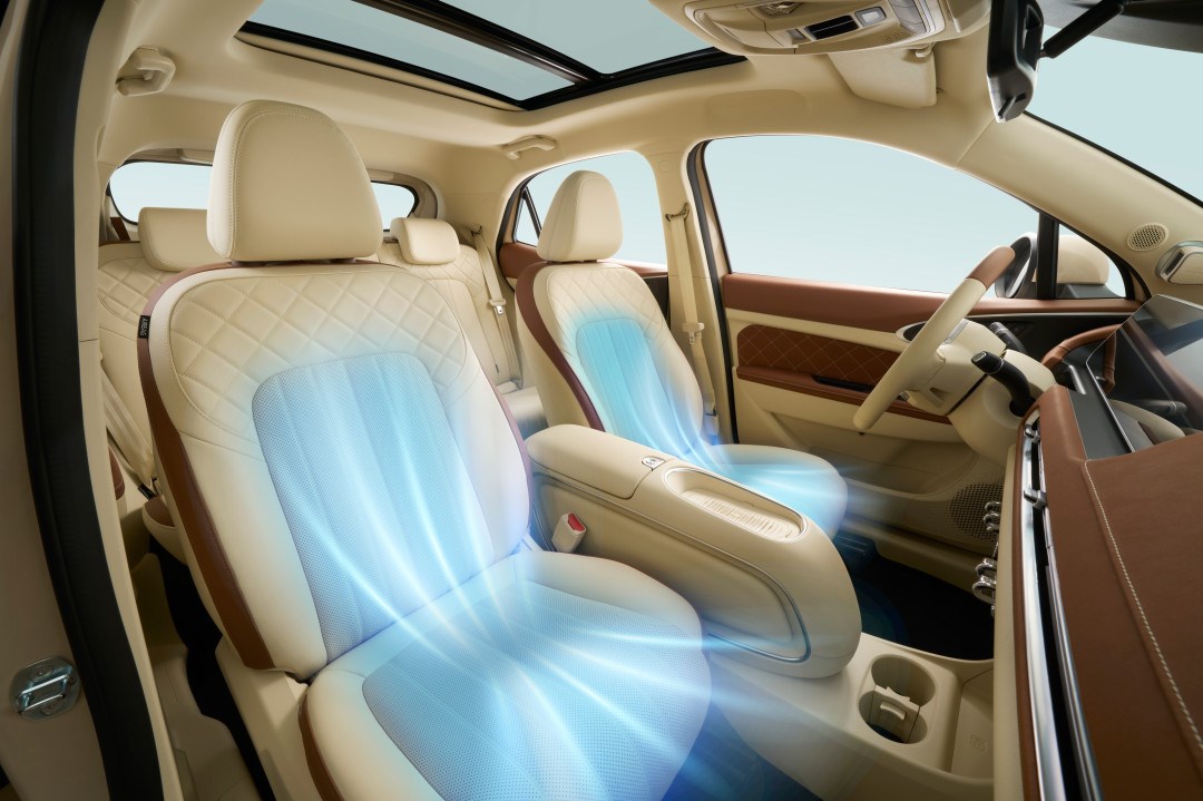 上车前,用户可通过手机APP远程开启空调和座舱智能清洁功能,提前给车内降温并净化车内空气。即便车内温度高达45℃时,欧拉好猫也可在10分钟左右迅速降温至30℃以下,空调制冷能力快速高效。同时,用户还可以远程或上车后语音开启前排座椅通风,支持高中低三个档位调节,就算穿着防晒衣开车也不会觉得闷热不透气。这还不够,具备按摩功能的前排座椅、感应式电动尾门等功能的加持,进一步提升了用车体验。