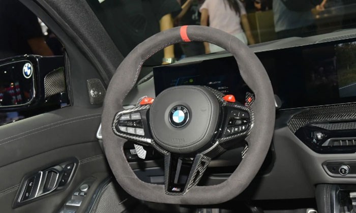 内饰设计上,2024款宝马M3换装了全新的“D形”方向盘,带有红色回正标,同时装备有14.9英寸的曲面车载大屏,内置宝马8.5代车机系统。细节装饰方面,作为M家族成员,当然少不了碳纤维装饰面板、Alcantara翻毛皮和轻量化桶形座椅。