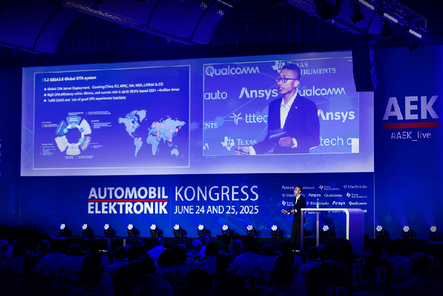 【路德维希堡,德国,2025年6月24日】,第29届欧洲汽车电子大会(Automobil-Elektronik Kongress)于德国路德维希堡开幕。AEK聚集全球头部OEM/Tier1/芯片巨头/软件商高层技术战略交流,是欧美车企必赴的深度论坛。吉利汽车作为中国车企唯一受邀代表,研究院电子软件中心副主任韩勇在大会发表题为《Geely EEA Development Reflections》的主题演讲,系统阐释吉利电子电气架构技术发展、全球化标准体系及应用车型,展现中国汽车科技在全球智能化浪潮中的引领地位。