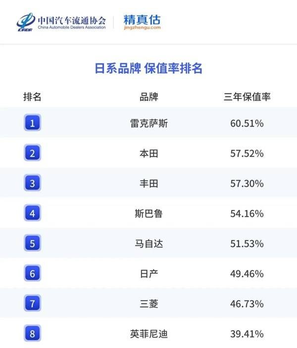 论保值,雷克萨斯是日系品牌三年保值率冠军。据《2025上半年中国汽车保值率研究报告》,该品牌整体以60.51%的三年保值率,稳居日系品牌榜首。ES系列以63.89%,位列进口中大型车第一;NX系列则以56.18%,跻身进口中型SUV前三。