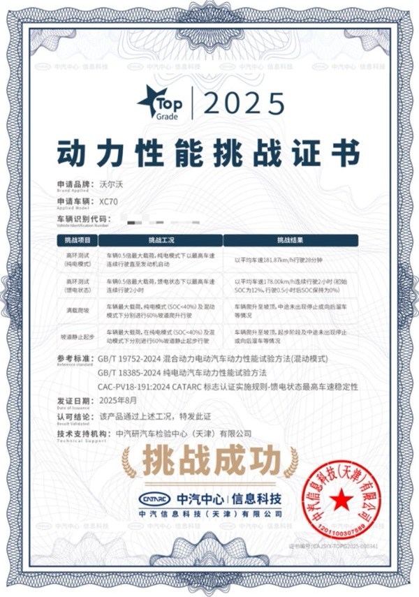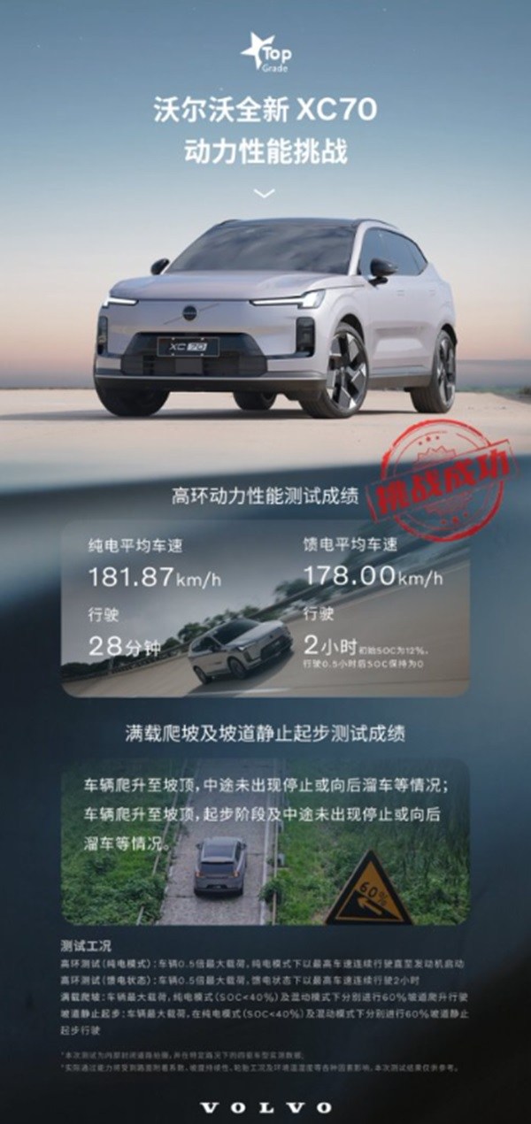 在新能源汽车市场竞争愈发激烈的当下,消费者对混动车型的期待早已超越“省油”的单一诉求,转向全场景下的动力可靠性与性能均衡性。作为豪华超混领域的标杆车型,沃尔沃全新XC70近日接受了国内权威汽车检测机构——中汽中心的严苛动力性能测试,以“高速不失速、馈电不乏力、爬坡不费力”的硬核表现,验证了其SMA超级混动架构的技术实力,重新定义了豪华混动车型的性能标准。